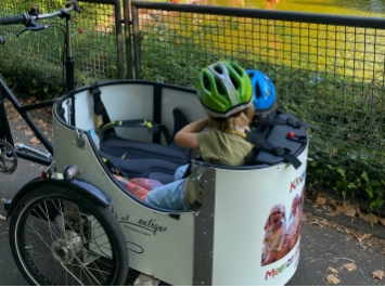 den Mainzer Volkspark in der Nähe gehörten zu den Aktivitäten, die Frau Biskin mit den Kindern unternahm. Hierzu standen den Kindern ein Kinderwagen für 4 Kinder, ein Elektrofahrrad mit 5