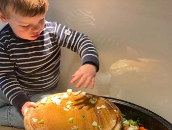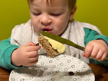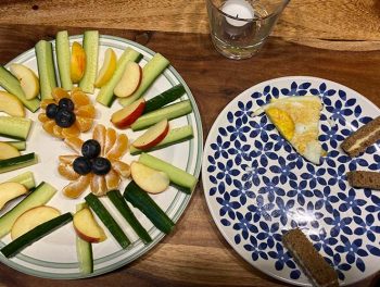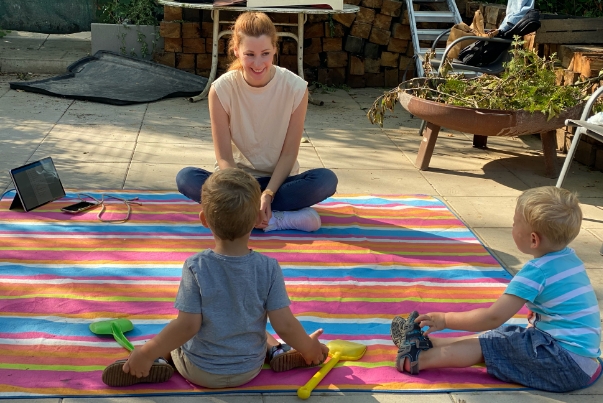auf einer schönen Decke als Picknick realisiert. Auch selbstbestimmtes Spielen, angeleitete Aktivitäten wie Basteln oder Lesen und Bewegung waren uns sehr wichtig. Der große Garten hinter dem Haus mit seinem vielen Spielgeräten und einem Bereich mit Gemüsegarten und verlegten Steinen zum Fahren mit Laufrad und Co. – alles vollkommen abgesperrt nach außen hin, war für Noan